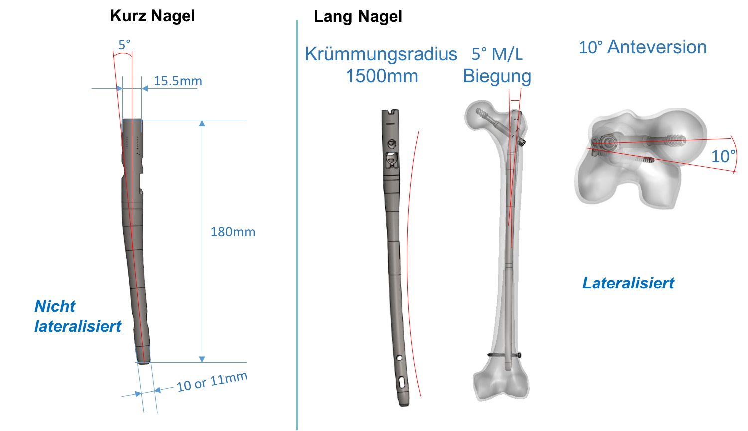 • Gegebenenfalls verbesserte Rotationsstabilität (Möglichkeit einer optionalen zusätzlichen Anti-Rotations-Schraube)
