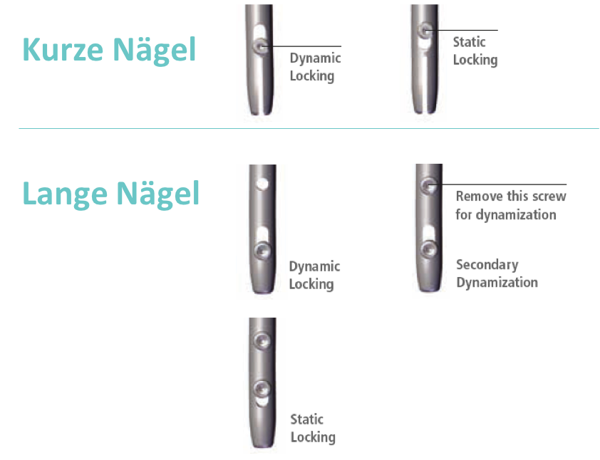 • Verriegelungsmechanismus: Schraubgewinde im teleskopierbaren Nagelloch