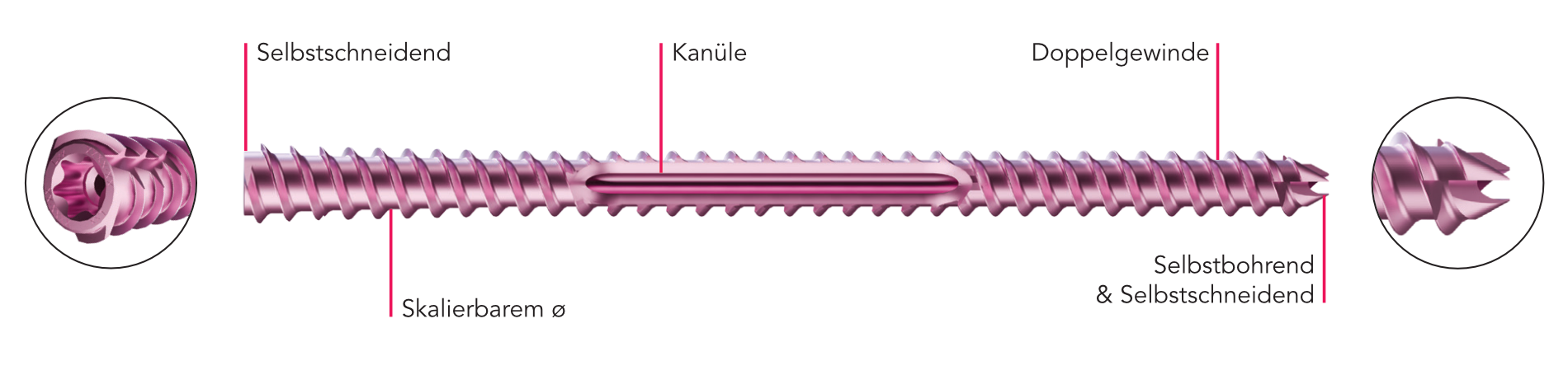 • Schrauben ø 3.0 mm und ø 4.0 mm mit Doppelgewinde