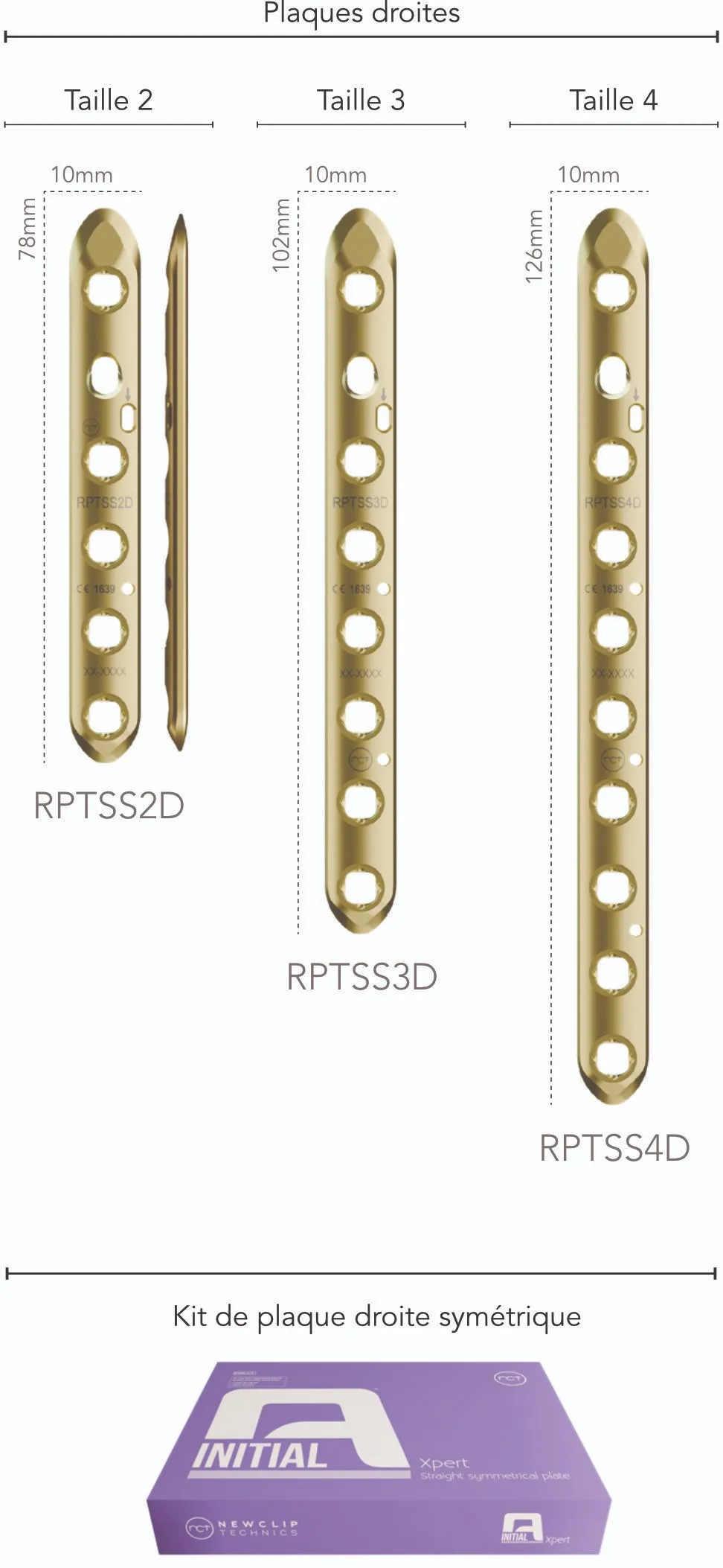 • Large gamme de plaques anatomiques et d'implants précontournés ainsi qu'une plaque droite