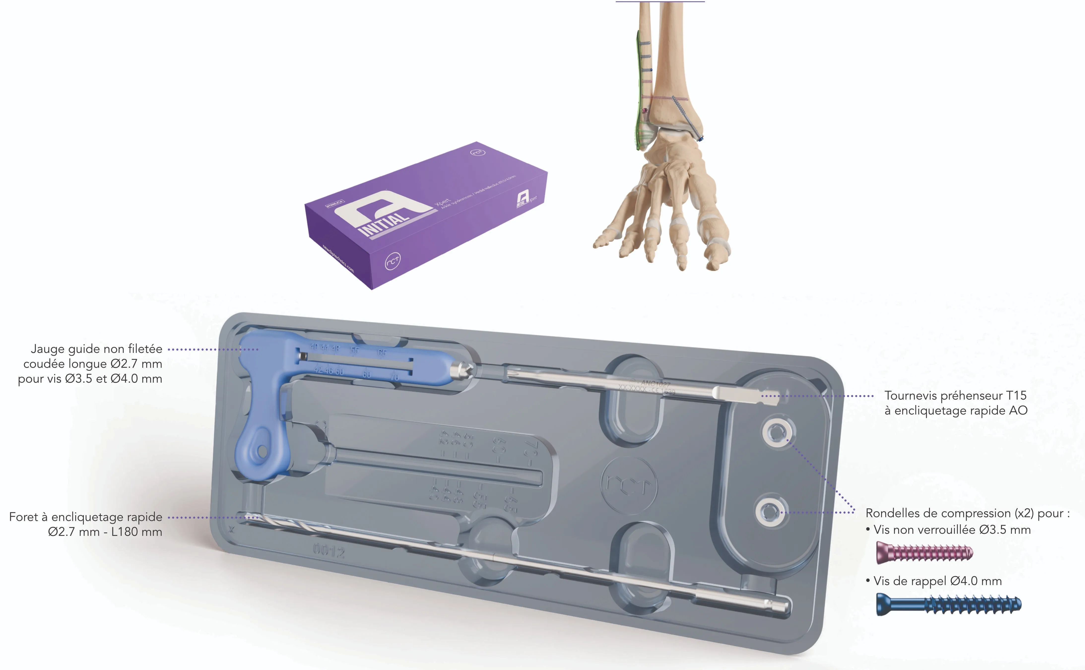 • Le kit Initial A™ Xpert - Syndesmose est dédié à la fixation de la syndesmose chez l'adulte.