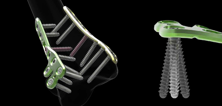 • Diamètre de fixation unique : ø2.4 mm avec trous pré-angulés pour un positionnement optimisé des vis.