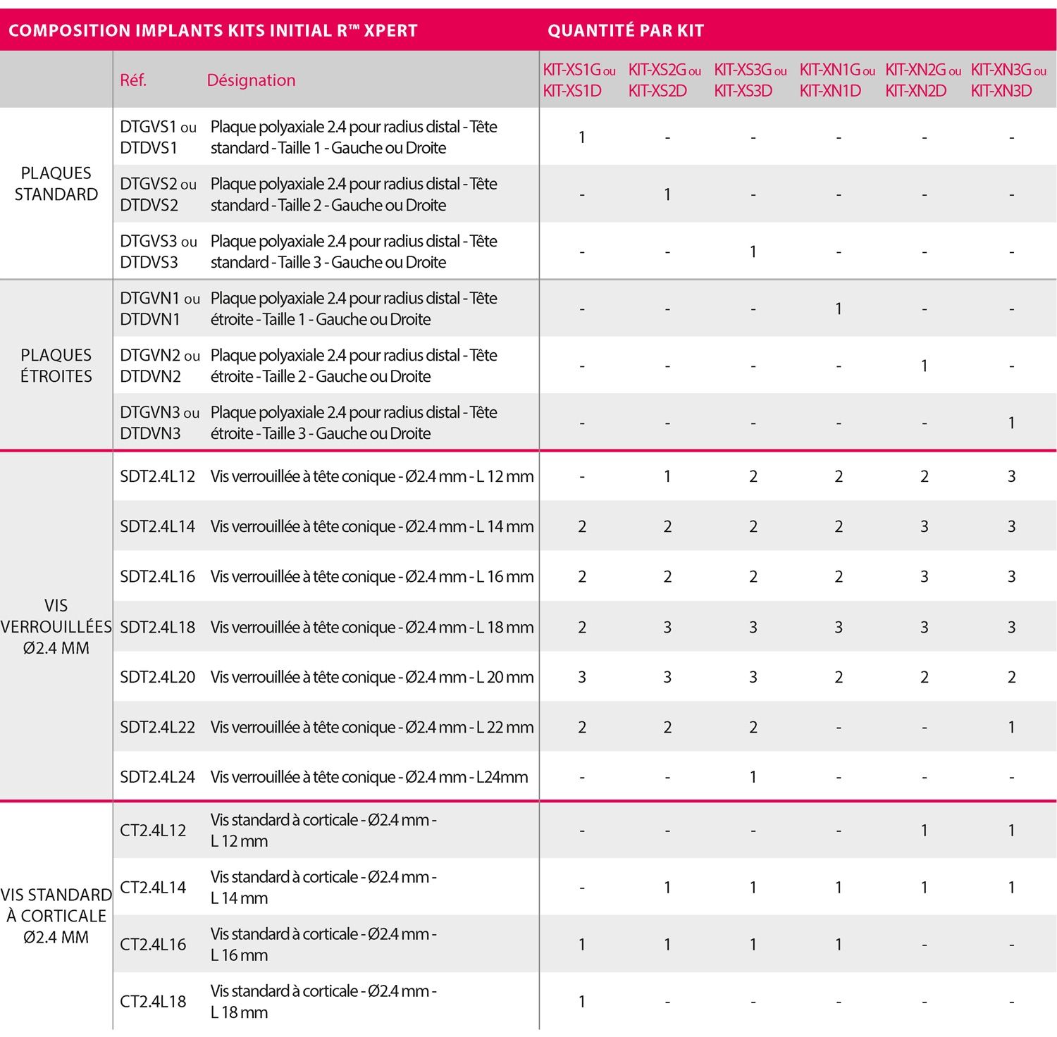 * La quantité des vis insérées dans chaque kit est variable en fonction de la taille de la plaque