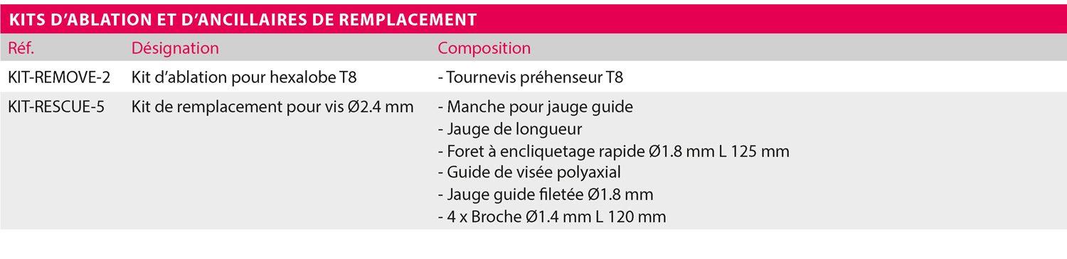 • Sécurité : kit stérile avec implants et instruments toujours neufs, pas de risque de contamination
