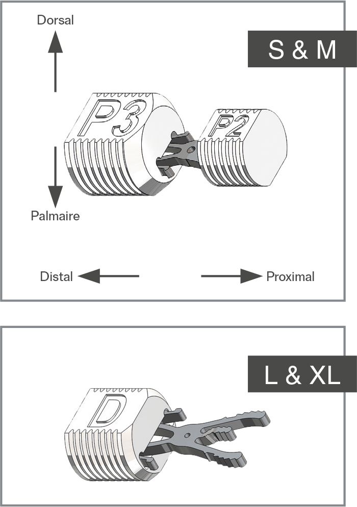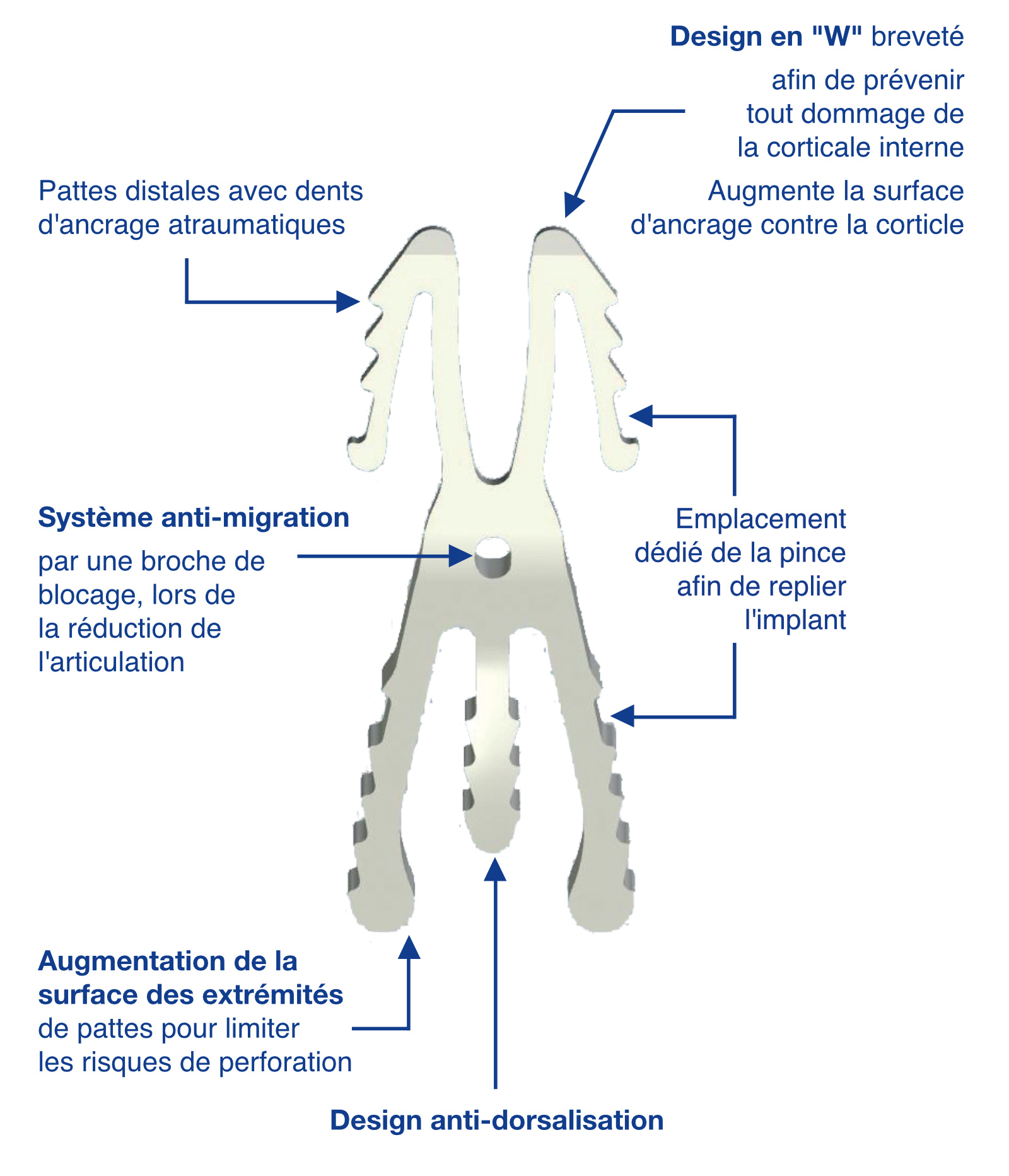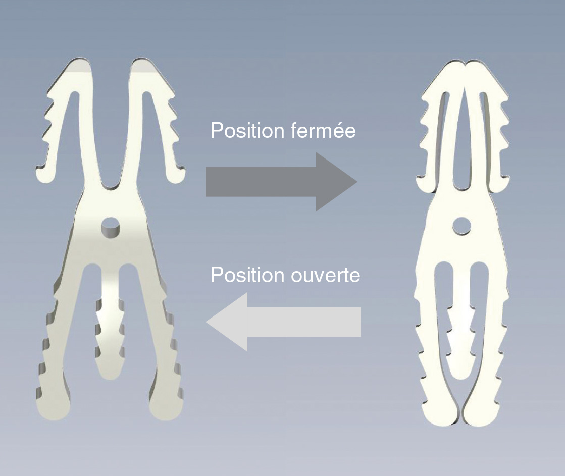 • Déploiement des pattes d'ancrage dans les phalanges pour un ancrage et une stabilité optimale