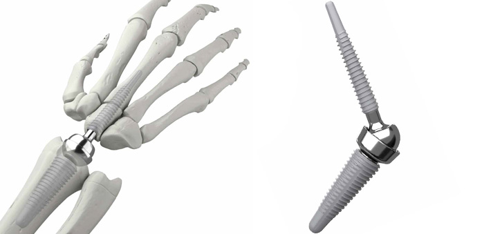 • Implant fileté métacarpien disponible dans différentes tailles, s'adapte ainsi à différentes anatomies.