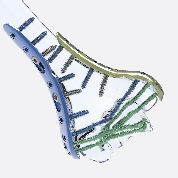 • Fixation diaphysaire : vis de Ø3,5 mm verrouillée et non-verrouillées, chacune de 10 à 40 mm (incrémentation de 2 mm) et de 40 à 60 mm (incrémentation de 5 mm).